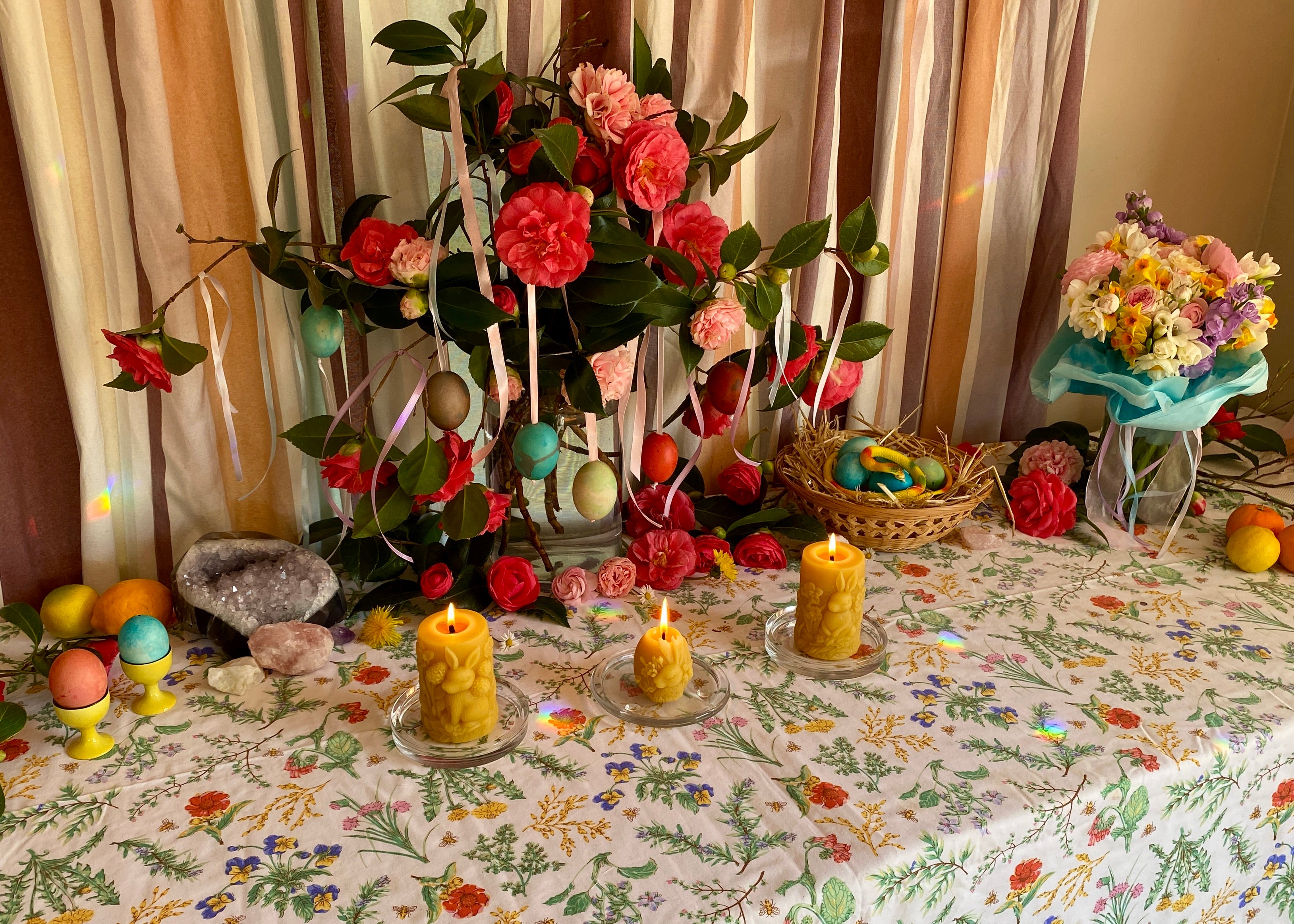 Featuring rabbits and flowers to celebrate the Spring Equinox.