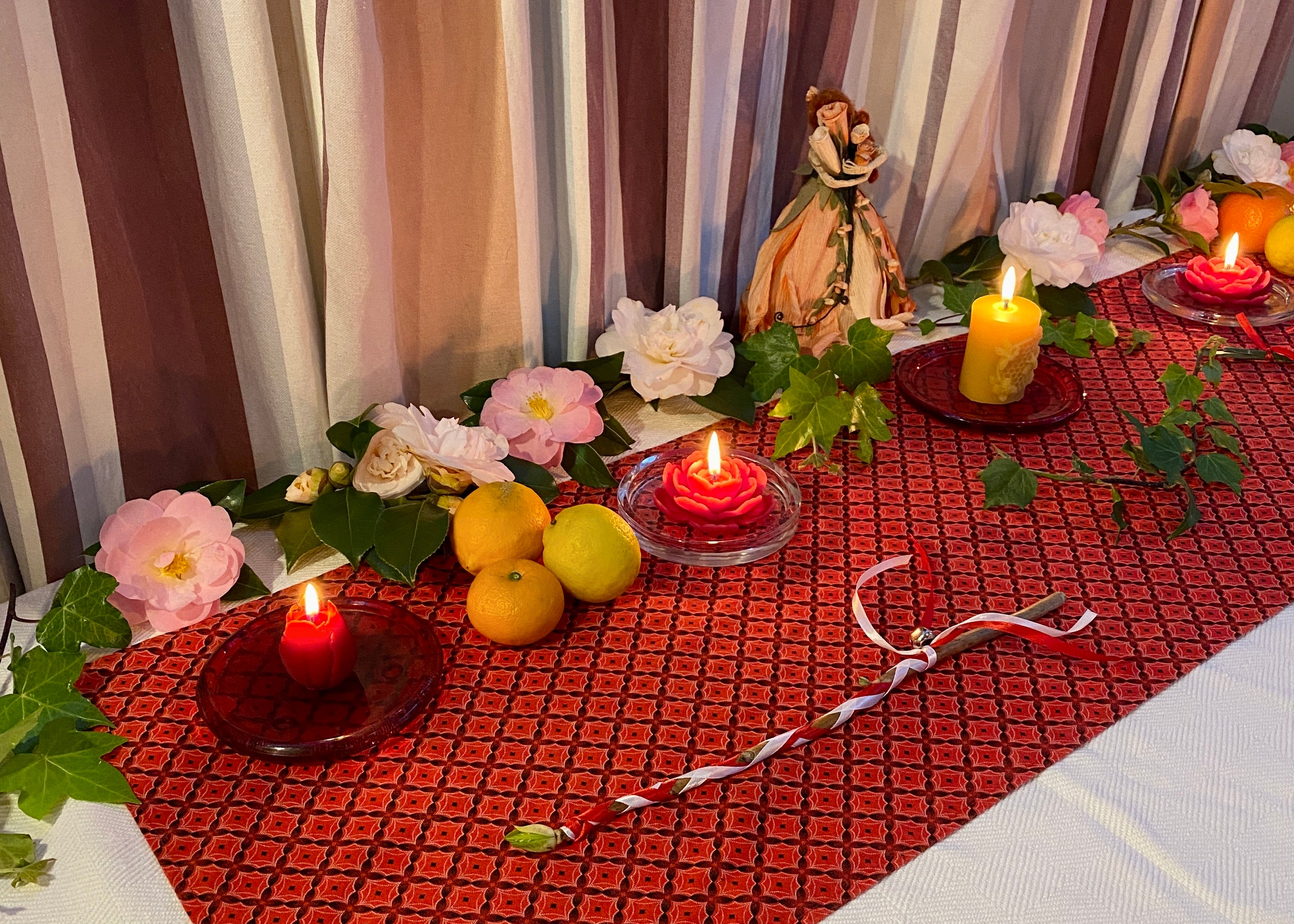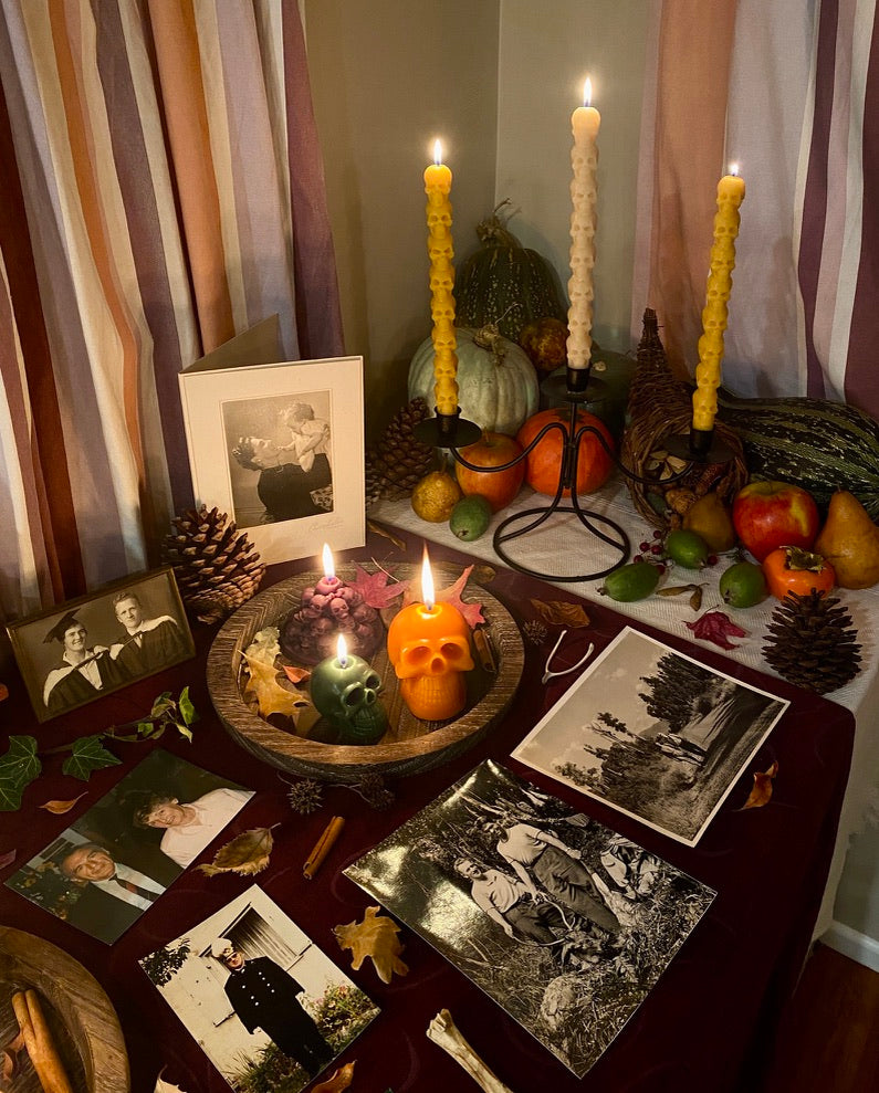 Featuring Autumnal death themed decor and hand poured beeswax candles.