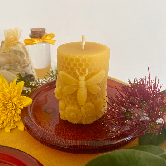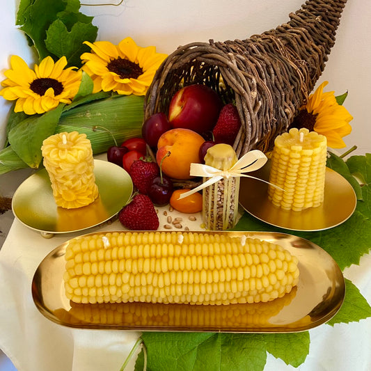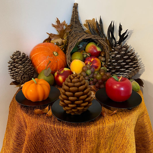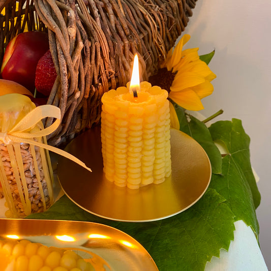 Featuring Autumnal harvest themed decor and hand poured beeswax candles.