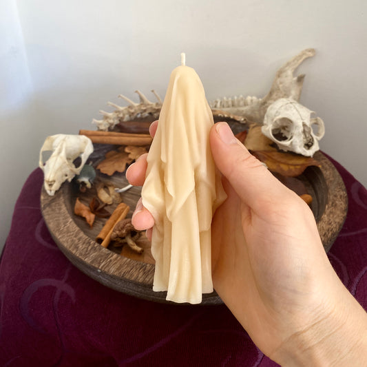 Featuring Autumnal death themed decor and hand poured beeswax candles.